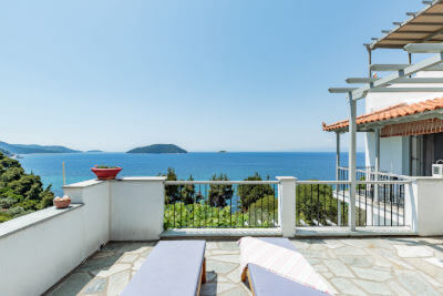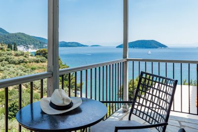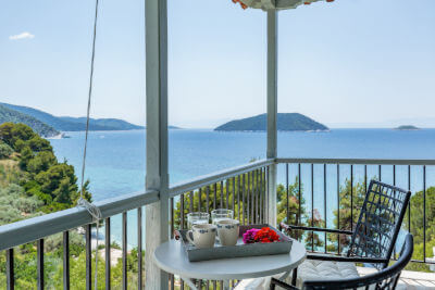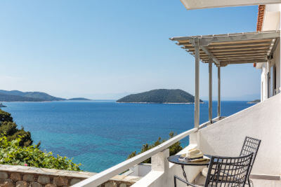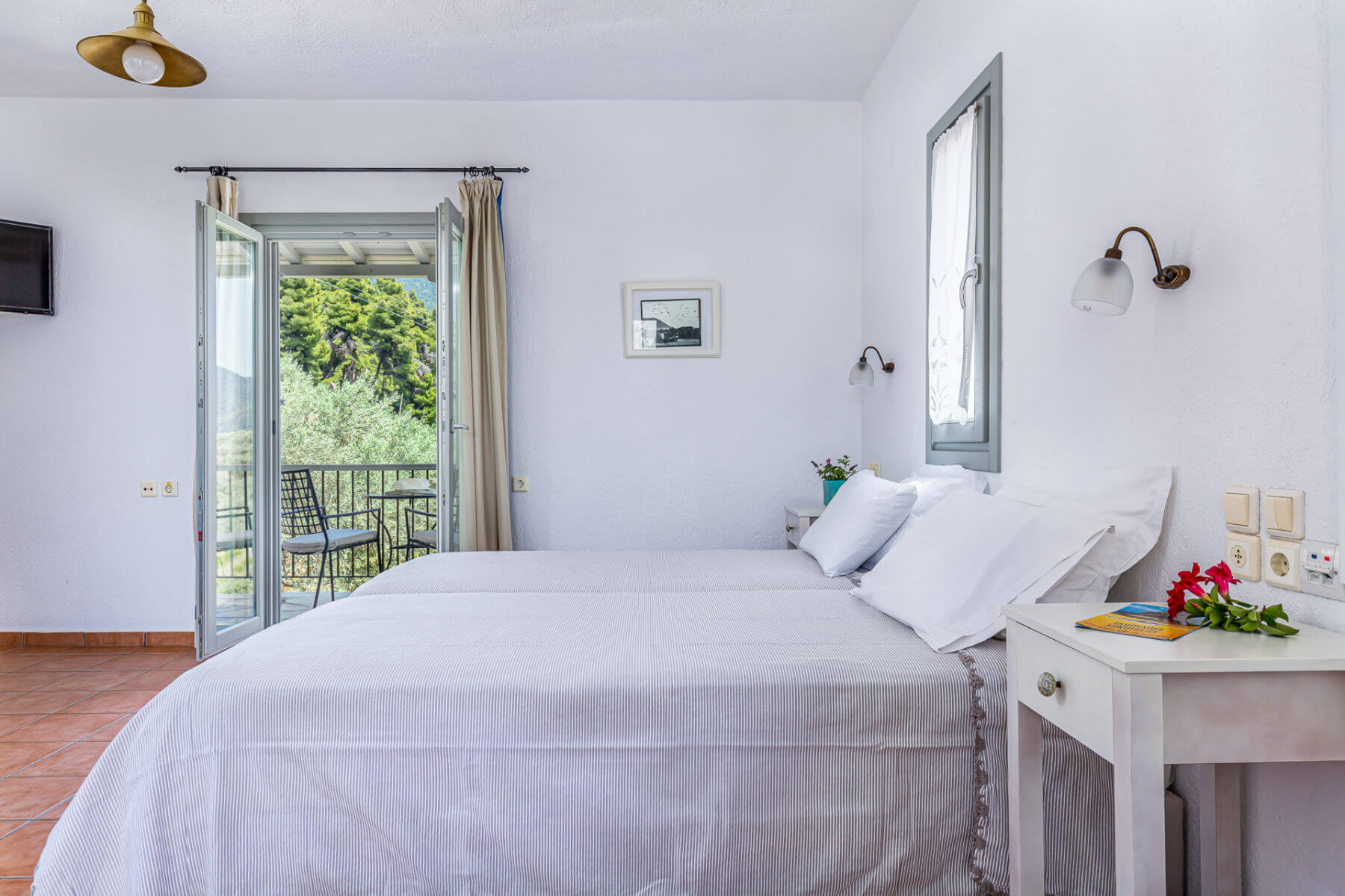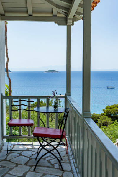 Spacious Double Room that can be referred to as "the eagles nest guestroom" with two balconies offering panoramic sea and forest views